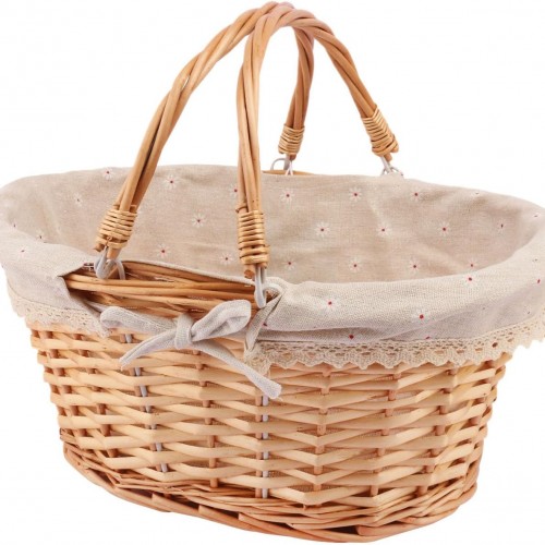 2 Pack Natural Wicker Basket with Linen Lining, 14 & 12 Inch Wicker Woven Picnic Basket with Handle for Picnic, Camping, Outdoor Party