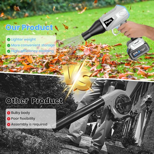 - Intelligent Safety & Charging Protection:Battery Powered Leaf Blower built-in temperature control and dual-color LED indicators ensure safe, automatic stop charging when complete. Easily swap between two 21V batteries for non-stop cleaning peace of mind