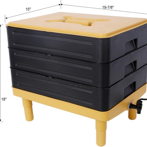 3-Layer Worm Compost Bin, Indoor & Outdoor Worm Composter, 65L Worm Composter for Vermicomposting Starter, for Recycling Food Waste in Garden (Black)