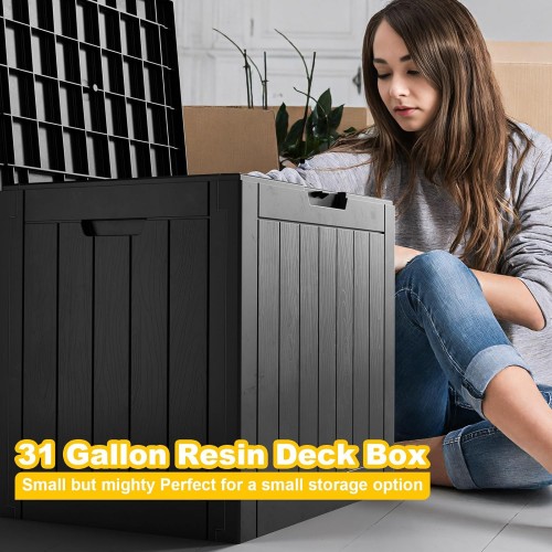 - BEAUTY MEETS DURABILITY: Featuring an aggregate resin with a wood grain pattern, this deck box offers an appealing look coupled with robust protection. It’s resistant to water, UV rays, fading, rust, peeling, and warping, making maintenance nearly unnecessary for the coming years