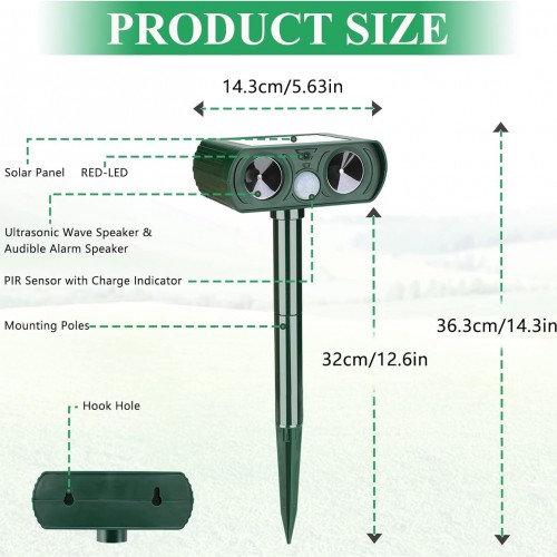 4 Pack Solar Ultrasonic Animal Repellent Outdoor Deer Repellent Cat Repellent Animal Raccoon Deterren Motion Detection Scare Squirrel, Rabbit Waterproof for Yard Farm Garden