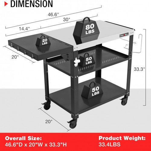 - Spacious and Convenient: With its large stainless steel countertop measuring L30”x W20”, along with a foldable side table providing an extension length of 14.4”, our outdoor grill table offers ample space for food preparation, plating, and serving. The three-layer storage design, equipped with essential features like a bottle opener, paper towel holder, garbage rack, and 4 hooks on the side, ensures everything you need is right at your fingertips, making outdoor cooking and dining a breeze