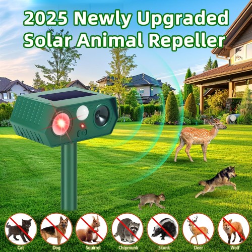4Pack Solar Ultrasonic Animal Repellent Outdoor, Cat Repeller Outdoor Deer Repellent Devices Motion Detection with Motion Sensor for Yard, Predator Lights with Red&Blue to Scare Rabbit Raccoon