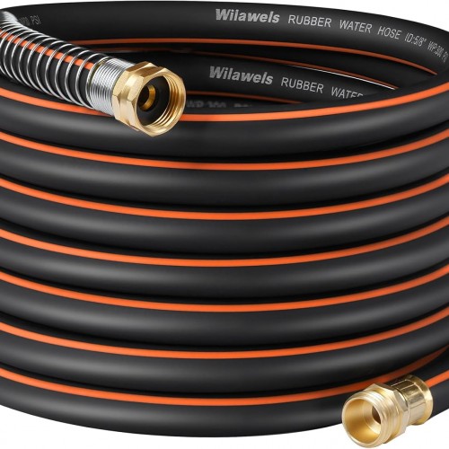 - Garden Hose Specifications: 3-layer reinforced structure rubber hose, 5/8 inch inner diameter, available in 5-foot, 10-foot, 15-foot, 20-foot, 25-foot, 50-foot, 75-foot and 100-foot lengths, get a suitable length hose for your yard and simplify your watering process.