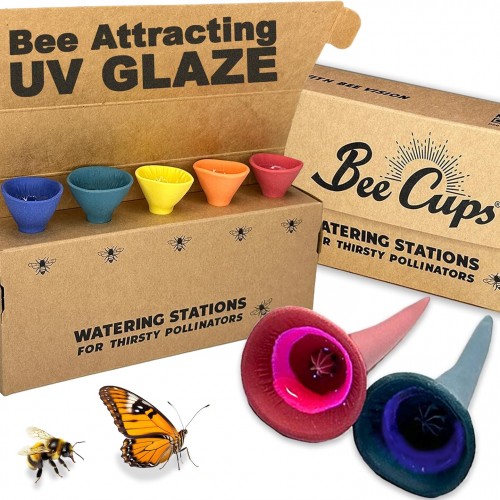 5 Pack, Bee Watering Station, 100% Handmade Porcelain, Bee and Butterfly Feeder for Garden, Outdoor Feeders for Thirsty Pollinators, Plastic Free, Pollinator Attracting Glaze (5, Blue)