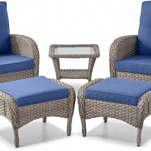 5 Pieces Wicker Patio Furniture Set – Swivel Rocker Outdoor Chairs with Ottomans and Side Table, Small Patio Conversation Set for Porch Deck Backyard