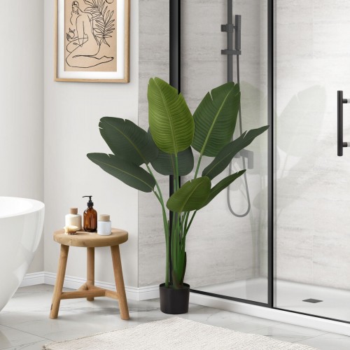 - Realistic Appearance: This faux Bird of Paradise tree stands 60 inches tall and is designed with 10 lifelike green leaves, offering a soft silky finish that can be easily adjusted to suit your decor needs.