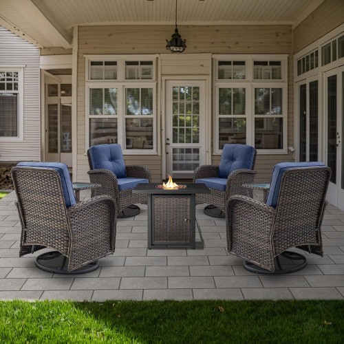 - Ultimate Outdoor Patio Comfort: This 7-piece outdoor patio furniture set, featuring 4 swivel rocker chairs, 2 side tables, and a 30-inch 50,000 BTU propane fire pit table, brings the ultimate comfort and style to your patio. Perfect for any outdoor setting, this outdoor patio conversation set elevates your outdoor experience, creating a cozy spot for relaxation and socializing.