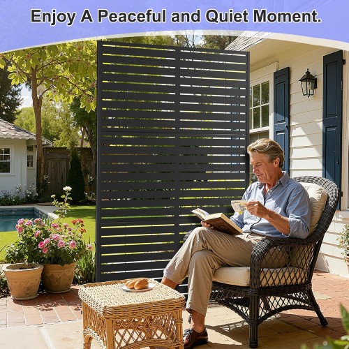 72″ Hx47 W Metal Outdoor Privacy Screen,Freestanding 3-Panel Fence,Decorative Weather-Resistant Room Divider with Stable Base,Portable Outdoor Indoor Panels for Patio Garden Balcony Deck Backyard