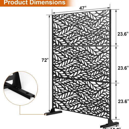 72″ H×47″ W Metal Privacy Screen, Outdoor Indoor Privacy Screens with Stand Panels, Free Standing Decorative Privacy Screen for Patio