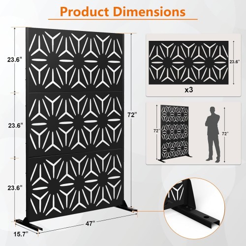 72″ H×48″ W Metal Privacy Screen, Outdoor Indoor Privacy Screens with Stand Panels, Free Standing Decorative Privacy Screen for Patio(