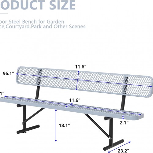 8FT Benches for Outside, Heavy-Duty Outdoor Garden Bench W/Back, Metal Park Bench for Sitting Area, Commercial Bench for Patio Porch Backyard School Sports Church Locker Room Shopping Centers