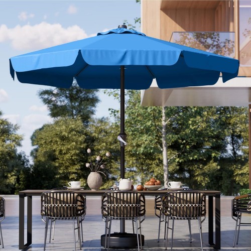 - FADE RESISTANT & WATERPROOF – The 9ft patio umbrella is crafted from premium outdoor-rated 100% polyester fiber, this sizable canopy stands up to the elements. Water beads up and rolls away, keeping you dry even on rainy days
