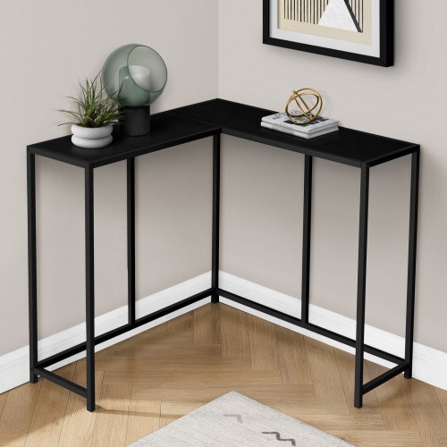 - Functional Storage: The table features an open shelf and a closed cabinet with a stylish square silver knob, providing ample surface space for storage and display.