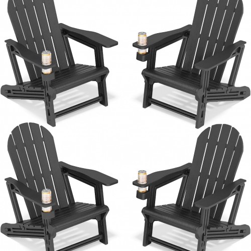 Adirondack Chair, Tool-Free Assembly All-Weather Adirondack Chairs, HDPE Fire Pit Chairs with Cup Holder, Outdoor Chair for Patio Garden (Grey)