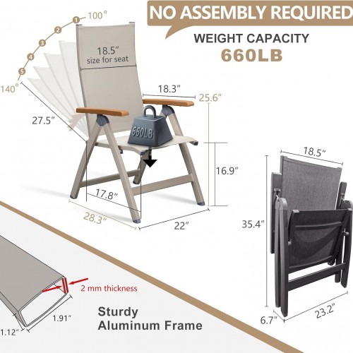 - 【Ultimate Comfort, Anytime, Anywhere】: It ergonomically designed, making it your perfect companion for any occasion—whether at home, outdoors, or on the go. Its smooth folding mechanism and 5-position adjustable backrest allow you to easily find your ideal sitting or reclining angle, ensuring maximum comfort wherever you are. The seat cushion is made of high-quality Phifertex mesh fabric, provide exceptional breathability, keeping you cool in the summer and comfort in the winter. Say goodbye to discomfort from long hours of sitting.