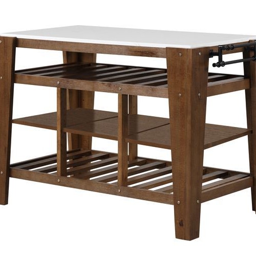 Alaroa – Kitchen Island – Marble Top & Rustic Brown