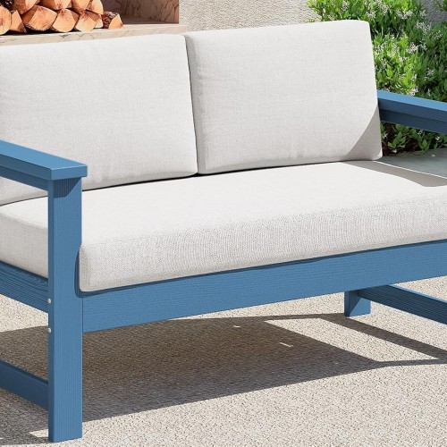 - Filled with 4.3″/11cm thick high-density foam and cotton, cushions are soft touching and breathable for a refresh comfy patio seating holding its shape in long time using. Water repellent and abrasion resistant polyester fabric also fits families with kids and pets