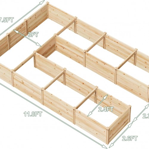 AMERLIFE U-Shaped Raised Garden Bed, 7.5Wx12Dx1.6H Outdoor Wooden Raised Garden Bed Planter with 19.6″ Depth Planter Box