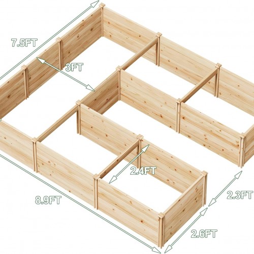 AMERLIFE U-Shaped Raised Garden Bed, 7.5Wx9Dx1.6H Outdoor Wooden Raised Garden Bed Planter with 19.6″ Depth Planter Box