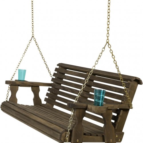 Amish Casual 3 Foot Roll Back Porch Swing with Cup Holders in Oak Stain – Amish Made in The USA from Treated Pine Heavy Duty 700 Lb. Weight Capacity