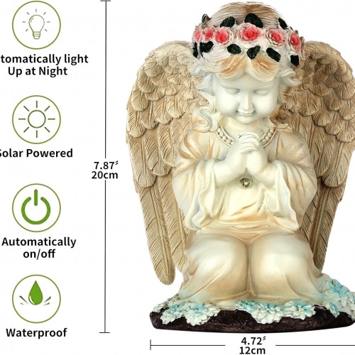 - Durable and Waterproof: The solar angel statue is made of resin, hand-painted, features beautifully crafted wing details, and flowers. It can withstand most weather, snow, rain, and sunshine, and is IP44 rated.
