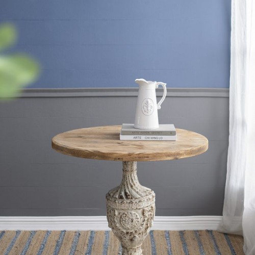 Antique Round Wood Table – Antique White / Gray