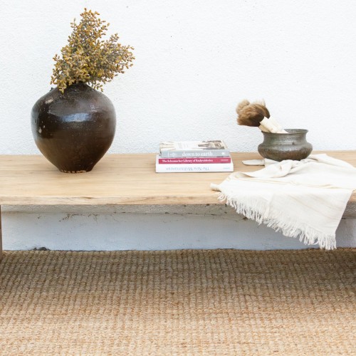 This antique Asian console is expertly crafted from solid wood with a beautiful bleached finish that highlights its stunning grain and rustic texture. The design and carving are a testament to the rich woodworking traditions of Shanxi, China, a province celebrated for its intricate woodwork. The table features an exquisite, all-over carving on the drawers and apron, adorned with geometric and floral patterns that speak of cultural heritage and masterful craftsmanship.