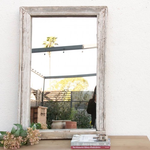 Place this rustic mirror vertically at the end of a corridor to bounce light and visually expand the space or lean it against the wall for a casual, collected look. It pairs beautifully with iron candlesticks or potted greenery.