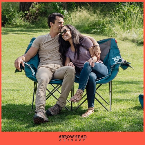 ARROWHEAD OUTDOOR Portable Folding Double Duo Camping Chair Loveseat w/ 2 Cup & Wine Glass Holder, Carrying Bag, Supports up to 500lbs