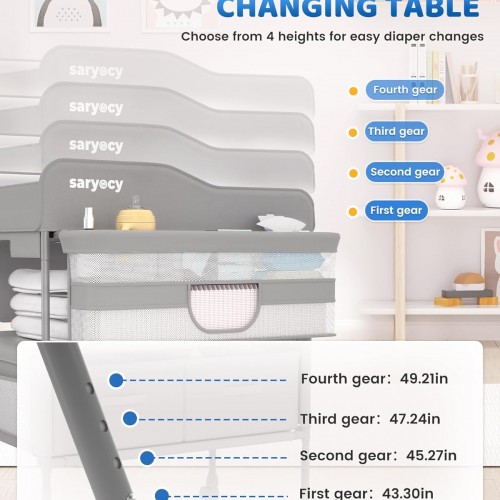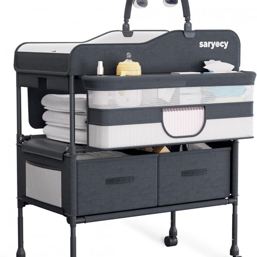 - Function:Changing Table features guard rails and a safety strap to ensure stability while changing diapers. Four lockable wheels prevent accidental movement, ensuring the diaper changing station stability during use. Its adjustable height offers three levels, suiting parents of varying heights. The diaper changing table with wheels is practical as a rolling changing table and doubles as a mobile changing table for convenience in any room