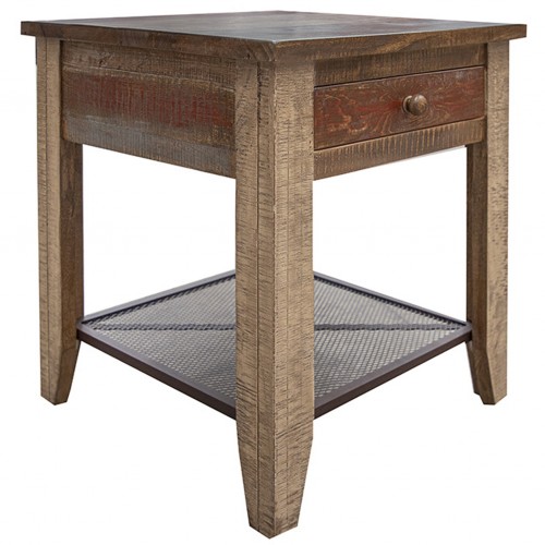 - Solid wood with a multi-color dry brush detail