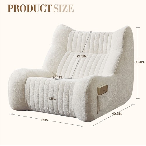 Bean Bag Chair For Adults, Lazy Floor Sofa Couch Memory Foam Bean Bag Sofas Chenille Fabric Reading Chair Comfortable Corner Lounge Sofa For Living Room – White