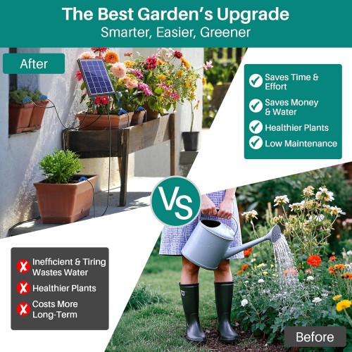 Biling 4W Solar Drip Irrigation System with Digital Programmable Smart Watering, 2200mAh Battery Backup for 15 Potted Plants Outdoor Indoor Garden