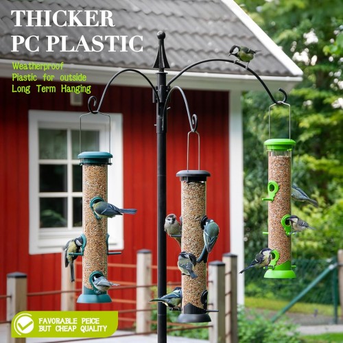 Bird Feeder Premium Hard Plastic for Wild Bird Feeders for Outdoors, Tube Bird Feeders for Outdoors Hanging,14 Inch 6 Port Lawn,Pack of 1