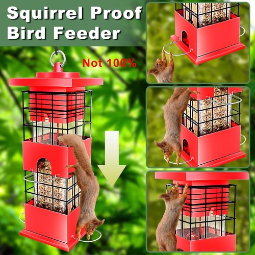 Bird Feeder Squirrel Proof for Outdoors Hanging, 3Lbs Metal Heavy Duty Birdfeeder with 4 Feeding Ports, Wild Birds Seed Feeder for Cardinal, Finch, Sparrow (Red)