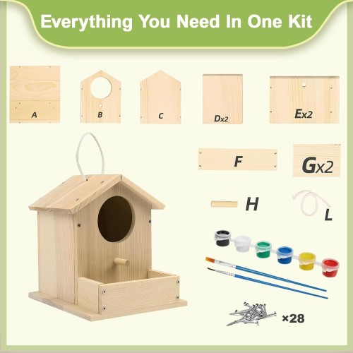 - ENJOY THE ASSEMBLY: DIY birdhouses are an ideal activity for family members to participate in together. Bird house kit provides an opportunity to make birdhouses with their own hands, develops hands-on skills and reduces electronic time. Get closer to nature. Wood birdhouse kits are perfect for all ages.