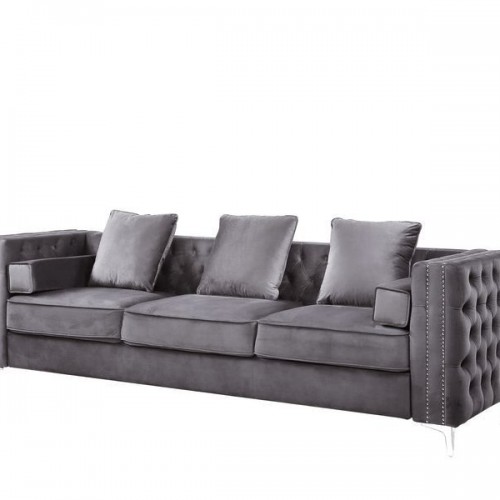 The Bovasis sofa and ottoman are ideal for smaller spaces. In a contemporary design featuring nailhead trim and sturdy metal legs. The beautiful velvet upholstery is soft to the touch and the button tufting adds dimension to the sofa. Pair it with the matching ottoman to complete the look. Available in two colors.
