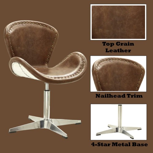 Brancaster – 33″ Accent Chair With Swivel – Retro Brown Top Grain Leather & Aluminum