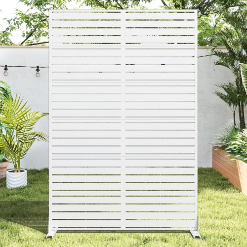 Casaphoria 72″ H x 47″ W Metal Privacy Screen, Outdoor Freestanding Decorative Divider for Patio, Deck, Balcony, and Garden with Stable Base, Black-Godfrey