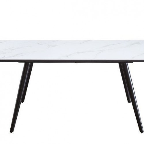 Caspian – Dining Table – White Printed Faux Marble Top & Black