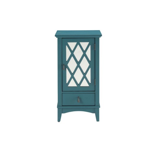 Classic design and great function make the Ceara floor cabinet a pleasing addition to any room. Featuring a lower drawer and “X” diamond fret work framed mirrored glass door, small enough to be put any where and not be in the way. But still has plenty of storage to make the most of is little foot print in your home.