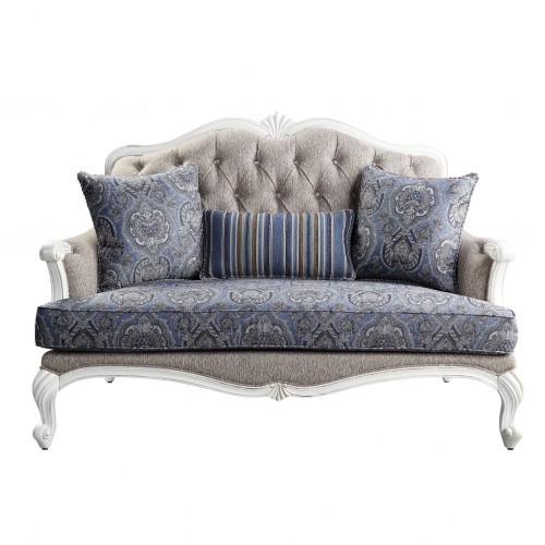 Ciddrenar – Loveseat With 3 Pillows – Fabric & White