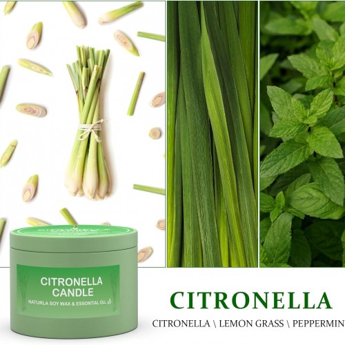 - Natural Citronella Candle: A natural blend of essential oils of citronella, rosemary, peppermint, lemongrass, and cedarwood for a light, fresh, uplifting scent that’s a must-have to keep us “away from the buzz” and the heat of summer
