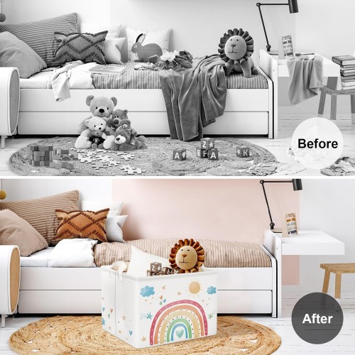 - Toys Book Nursery Bin: The storage bin will make our messy home tidy, you can put many mess in it, like kids toys, clothes, books, pool beach towels and so on