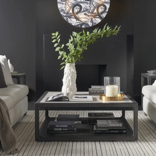 Crafted with regal grace, the Coalesce Dining Table is a magnificent centerpiece, its narrow, angled lines rising to a tabletop adorned with an intricate diamond motif. Cloaked in the noble Rolling Fog finish, it stands as a testament to the art of fine dining elegance.