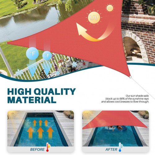 - DURABLE MATERIAL- Our shade sails are made of 100% brand-new high-density permeable polyethylene knitted fabric material. This durable material it’s fray resistant, tear resistant, and sunshine resistant.