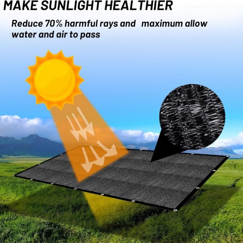Cool Area 70% Sun Shade Cloth Mesh Tarp with Grommets for Plant Cover 8x16ft Patio Canopy Garden Pergola Greenhouse Car Barn Kennel Black