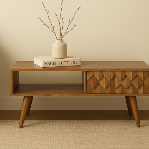 - Cortez Chestnut Media Unit – This elegant and modern media unit is made from 100% solid mango wood, it’s minimalist design is bound to complement any living room decor. The spacious tabletop provides ample space for your TV, ornaments or other essentials, while the 2 open shelves offer convenient storage for books, magazines, and other items.
