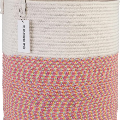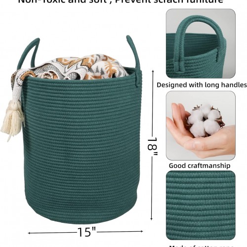 Cotton Rope Laundry Basket Hamper for Clothes Woven Storage Basket for Living Room Bedroom Boho Tall Rope Baskets for Blanket Toys Pillow Towels Baby Nursery Hamper Bin Large dark green